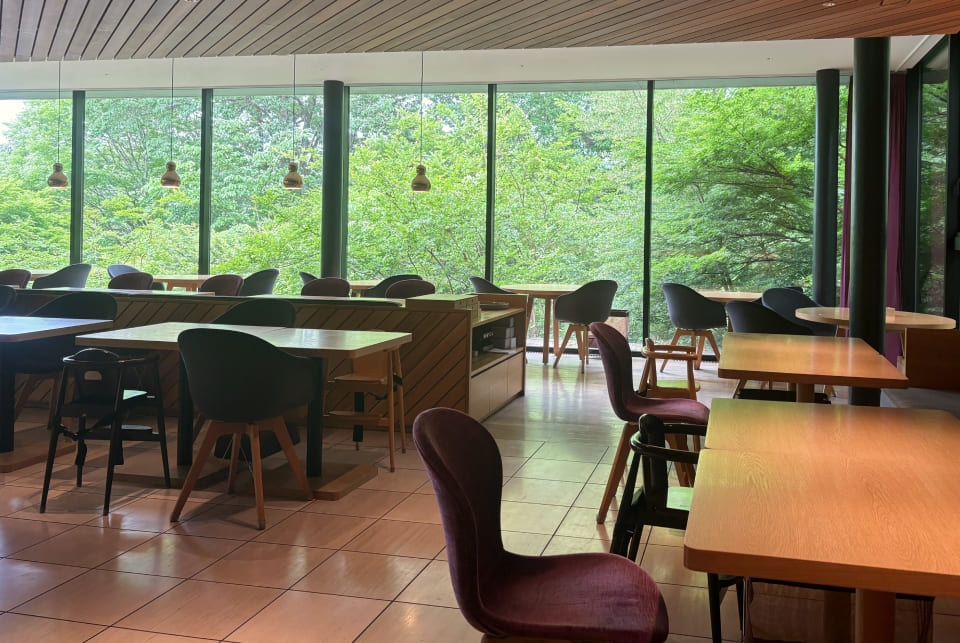 温泉は、貸切状態で満喫できました。露天風呂は新緑がとても綺麗で、体もポカポカに!久々に一人でゆっくりお風呂を堪能できました。温泉のロビーにはお水や、セルフでテイクアウトできる紅茶やコーヒーもありました。