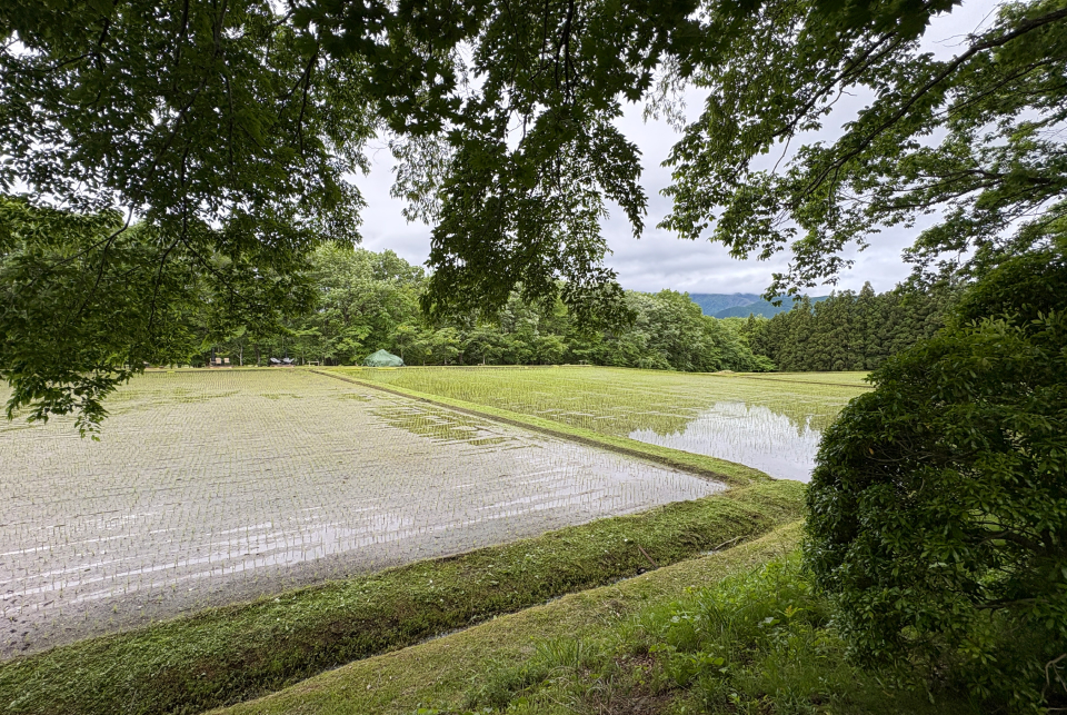 朝風呂から帰ると子どもたちも起きていたので支度して施設内を散歩。田んぼがあり、初めてみるおたまじゃくしにはしゃいでいました。空気も水も緑も、すべてが綺麗で本当に心地よかったです。