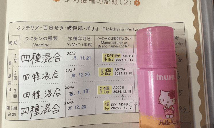 母子手帳の接種履歴を確認してもらって、必要な種類の注射を打ってもらいました。日本での予防接種履歴を確認してもらう時に和暦表記だとこれはなんだ!?と聞かれる可能性があるので